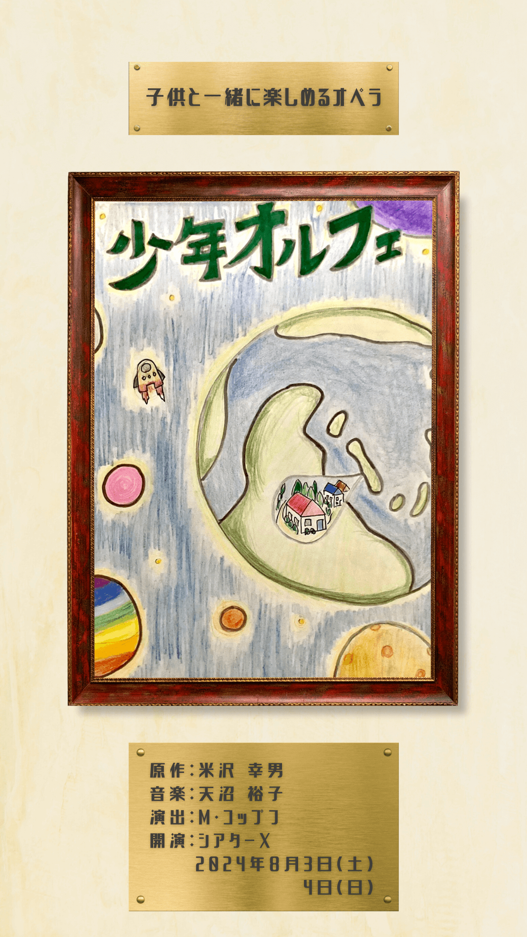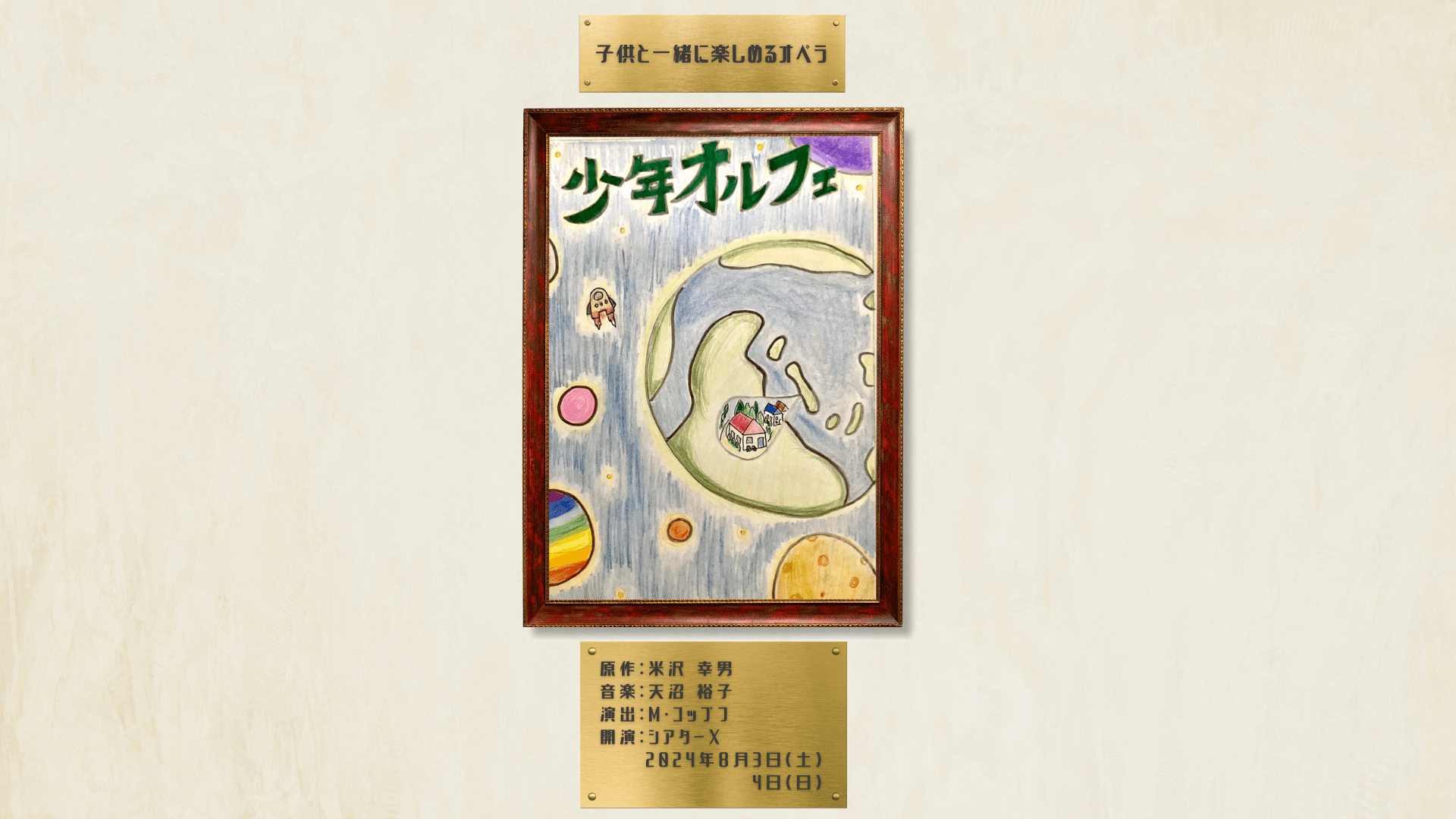 純真無垢な兄妹愛の奇跡の物語を、作曲と指揮に卓越した才能を持つ天沼裕子が、ドイツのベテラン演出家、優秀な歌手陣、俳優陣、そしてスタッフと協力して、モーツァルトの「魔笛」のようなジングシュピール(歌芝居)形式として上演します。